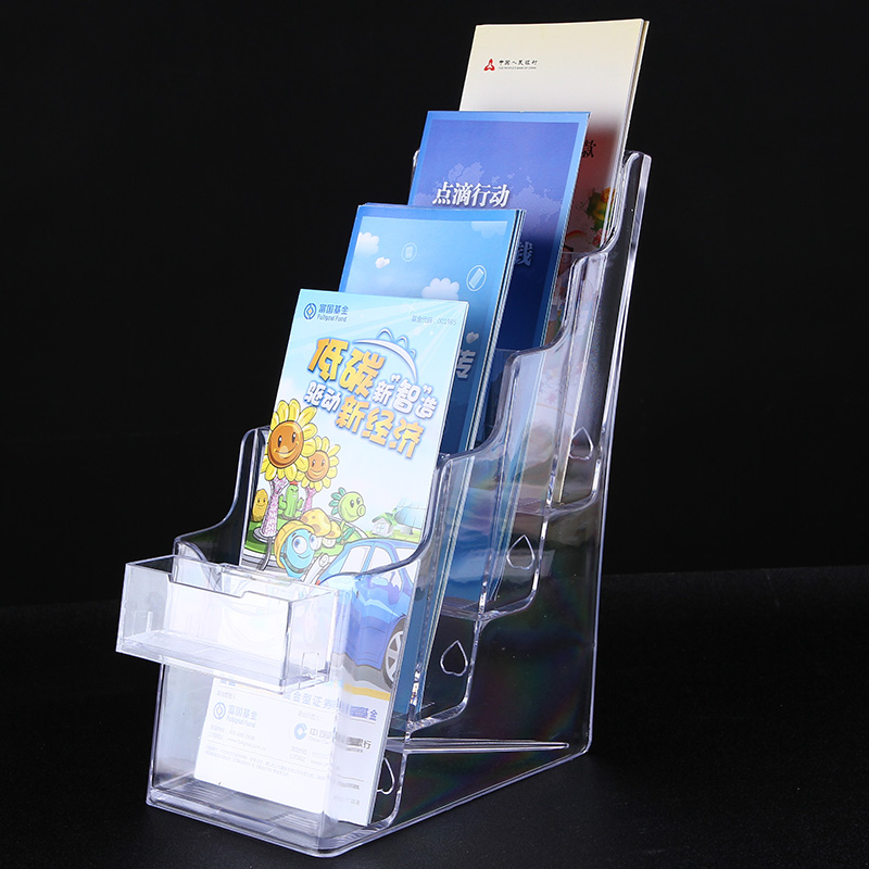 A4 Three-folding sheet Acrylic Tabletop Display Shelf Transparent Four Layers of Colorful Leaf Frame A6 Single-Leaf Shelf Wall-mounted Wall Multilayer Information Shelf Propaganda Shelf Book Press Shelf Hotel Front Desk Promotional Single Catalogue Shelf