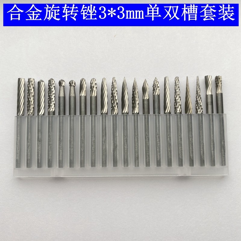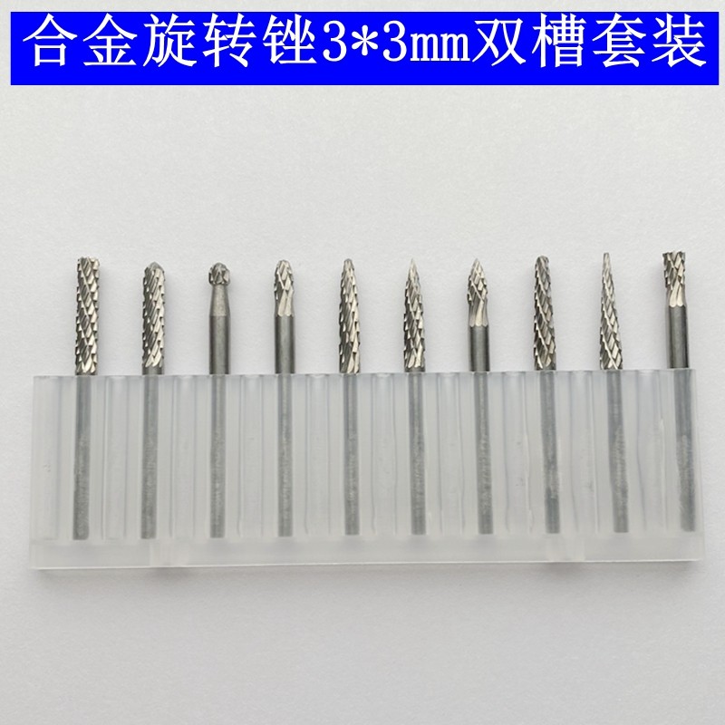 Cemented carbide rotary file 3*3mm set tungsten steel grinding head metal engraving milling cutter woodworking grinding power tool