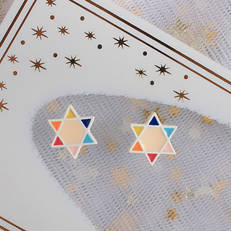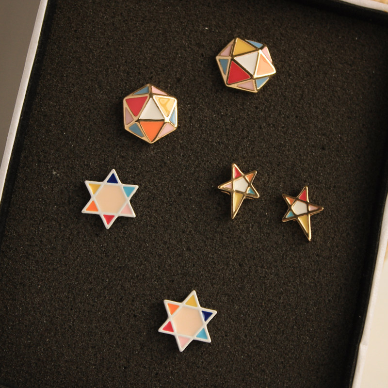 Small triangle hanging big triangle With ear piercing ear pin Small triangle hanging big triangle Without ear piercing cushion clip small deformed five-pointed star With ear piercing ear pin Small deformed five-pointed star Without ear piercing cushion clip white background colored diamond Yes