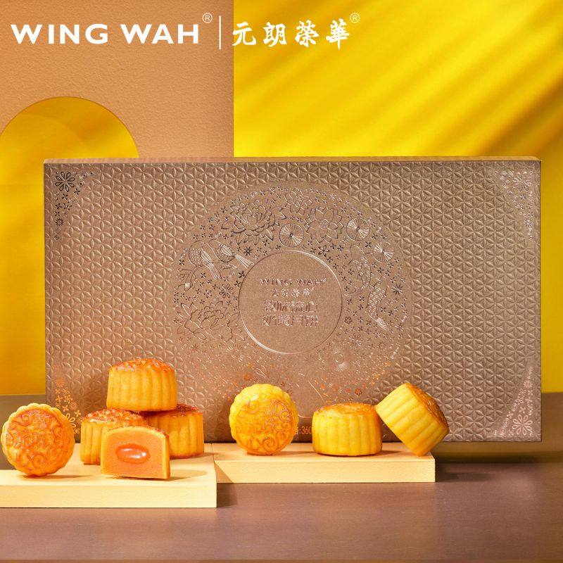 Yuen Long Ronghua Flowing Milk Yellow Mooncake Gift Box 360g Box 8 Packed Group Purchase Mid-Autumn Festival Gift Box Gift Box