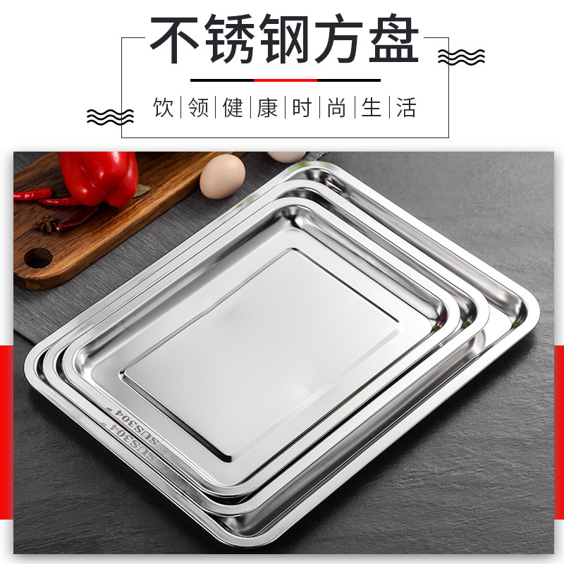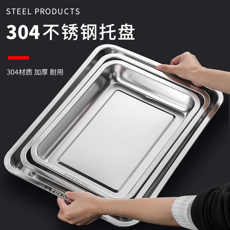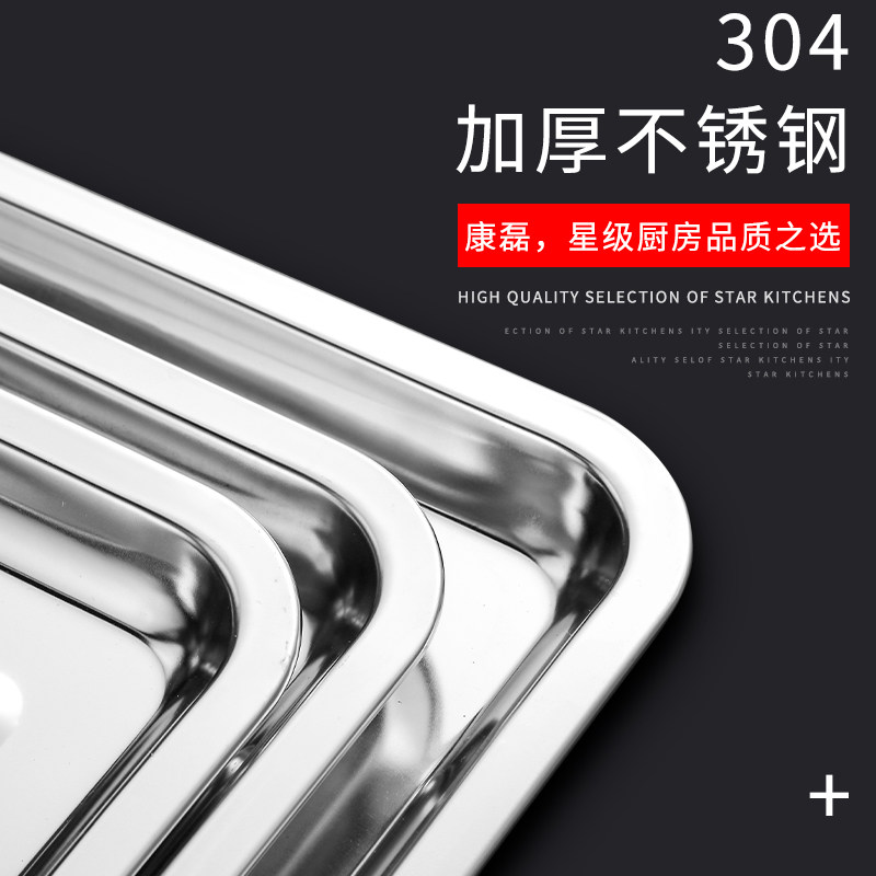 Conlei 304 Square Pan Stainless Steel tray rectangular dinner plate Barbecue Dish Steaming Dinner Plate deepens no magnetic hotel Home