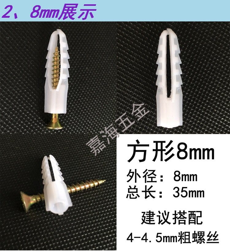 Square head 6*28mm (pack of 260 pieces) Square head 8*35mm (pack of 160 pieces) Square head 10*40mm (pack of 70 pieces)