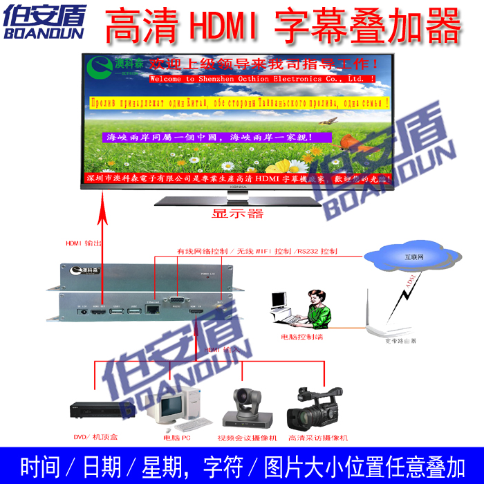 HDMI subtitle machine character overlay OSD picture text LOGO overlay RS232 real-time dynamic overlay