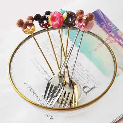 Plain color fork-blue Brown Mickey fork-black red Mickey natural color fork-cyan blue donut natural color fork-Rose Red donut Golden Fork-blue Brown Mickey normal color fork-yellow brown Mickey original color fork-