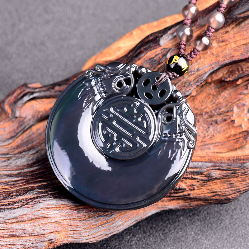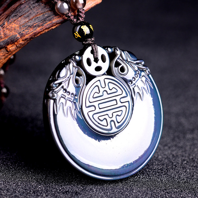 Open light natural rainbow eye obsidian double lin hanging seal men and women pendant 2020 Year of the Rat Zodiac mascot is a cow