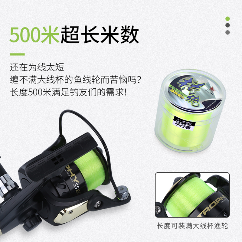 Han Ding Hengliu 500 meters fishing line main line sub-line Nylon line Sea fishing rock fishing line Fishing line Super pull force black pit