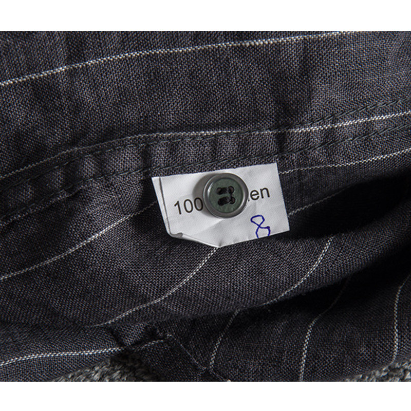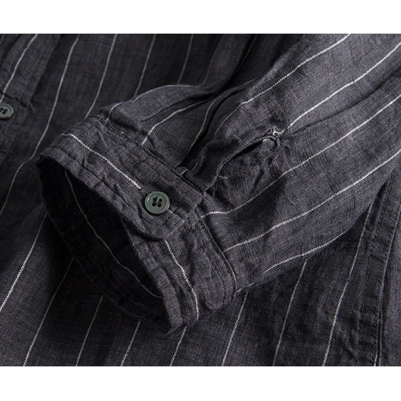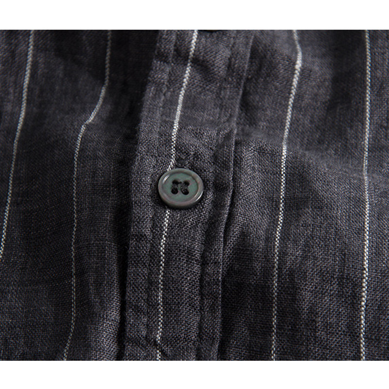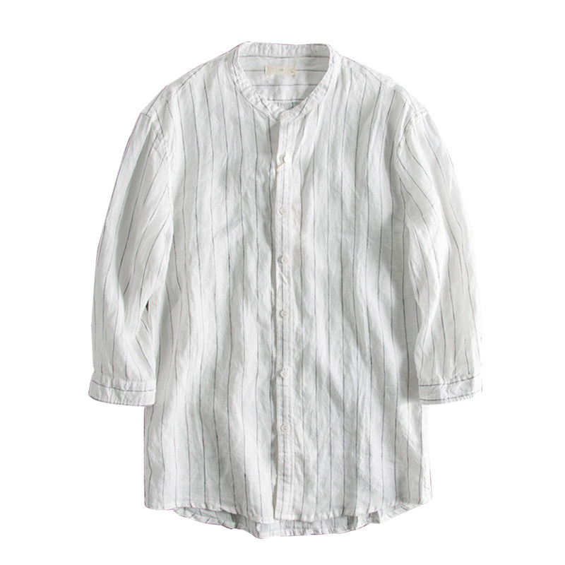 Linen Seven-sleeved Shirt Men Spring and Summer Strip Short Sleeve Sleeve Sleeve Sleeve Line