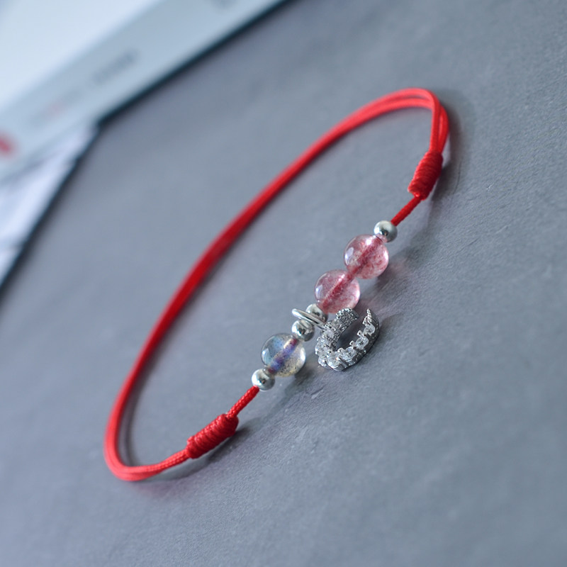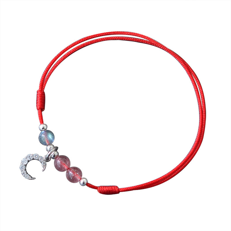 Red rope anklet female summer sterling silver transfer trick peach blossom strawberry crystal crystal ultra-fine anklet natal life safety foot chain