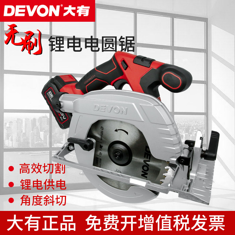 Devon large 5419 brushless Lithium electric circular saw 20V rechargeable multifunctional portable woodworking slotted circular saw