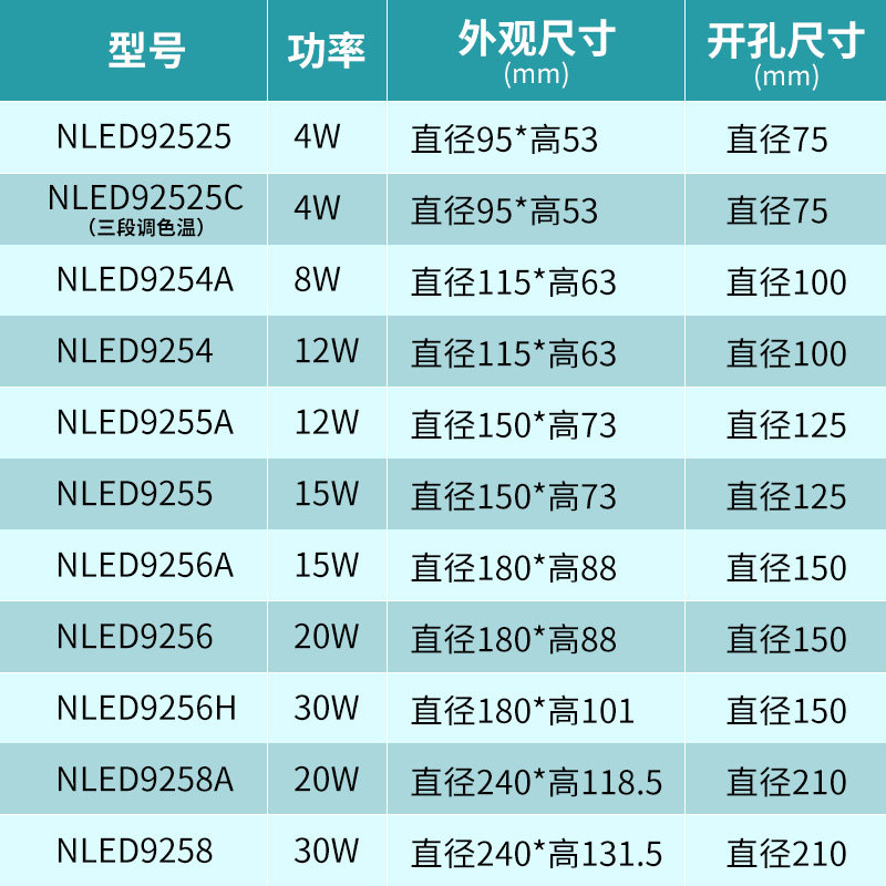 92525~4W ~ Drilling 75~Yellow 92525~4W~Drilling 75~Warm white 92525~4W~Drilling 75~White 9254A~8W~Drilling 1