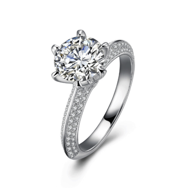 Luxury group with diamond six claws simulated Mozambe diamond ring lady half wall river Jiangshan proposed engagement platinum ring