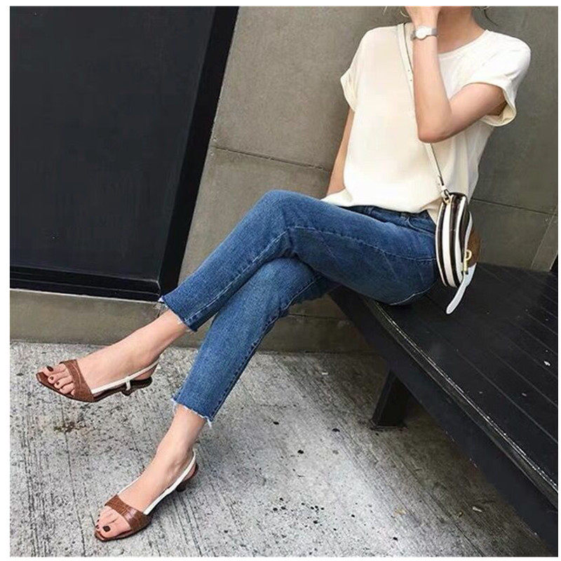 Pregnant women's jeans spring and autumn style outer wear Korean version of the abdomen support 8 points loose straight eight points small nine points pants tide mother