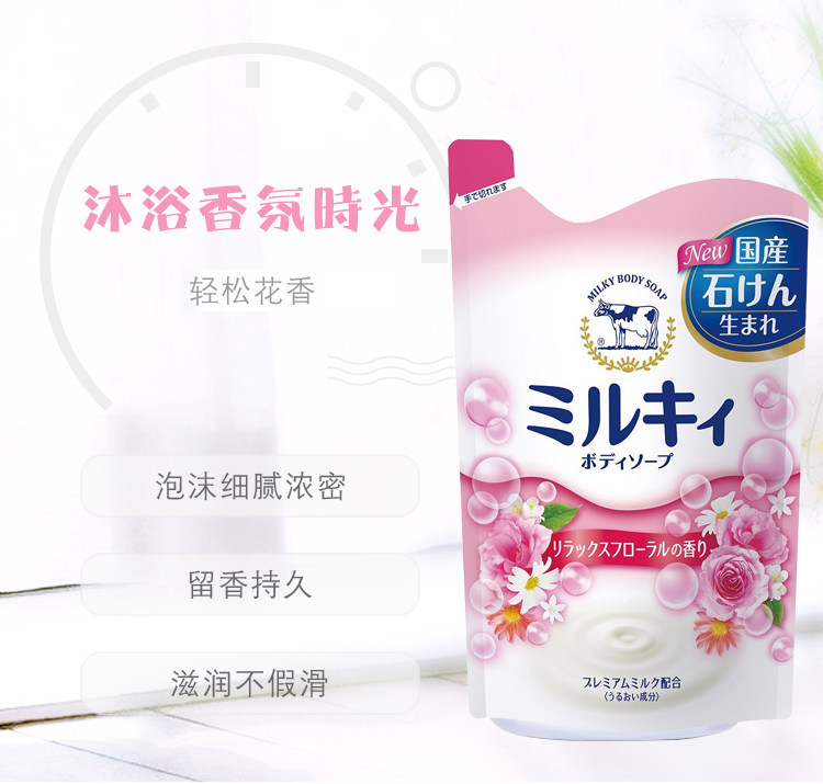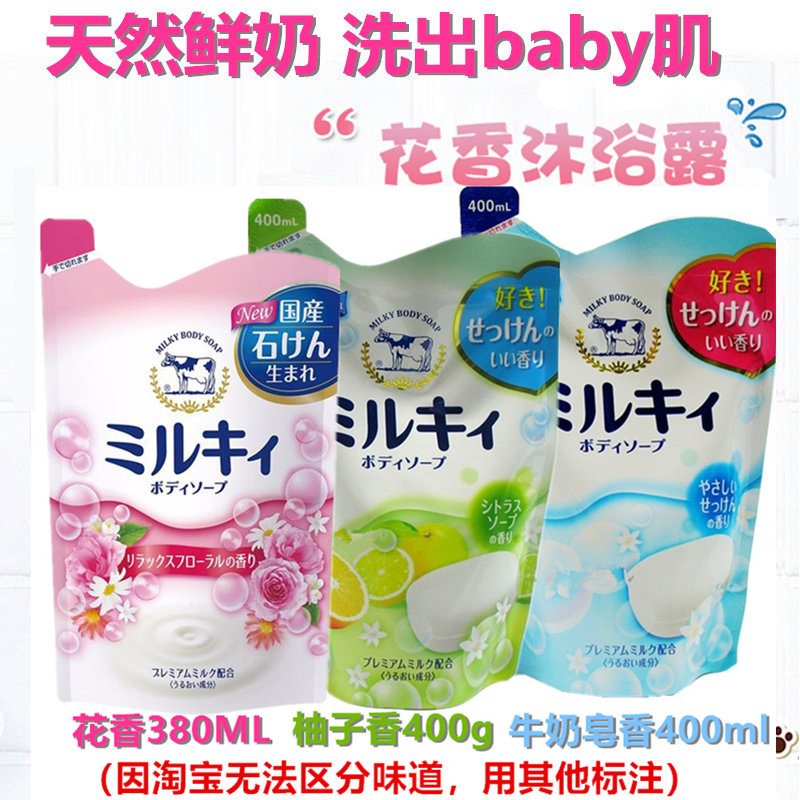 Japan COW milk stone alkaline shower gel milk replacement pack 400ml thick foam moisturizing skin beauty milk fragrance