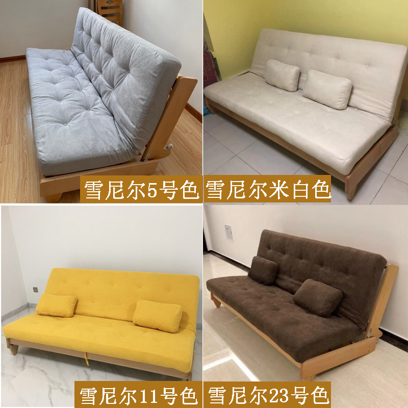 Nordic Japanese-style foldable solid wood sofa bed dual-purpose small apartment living room multi-functional single double modern technology cloth