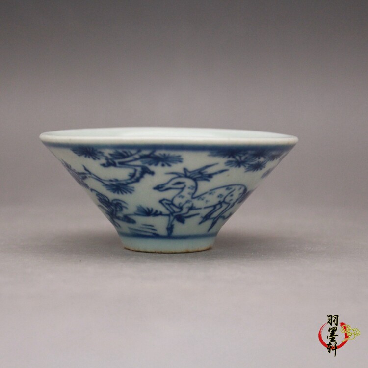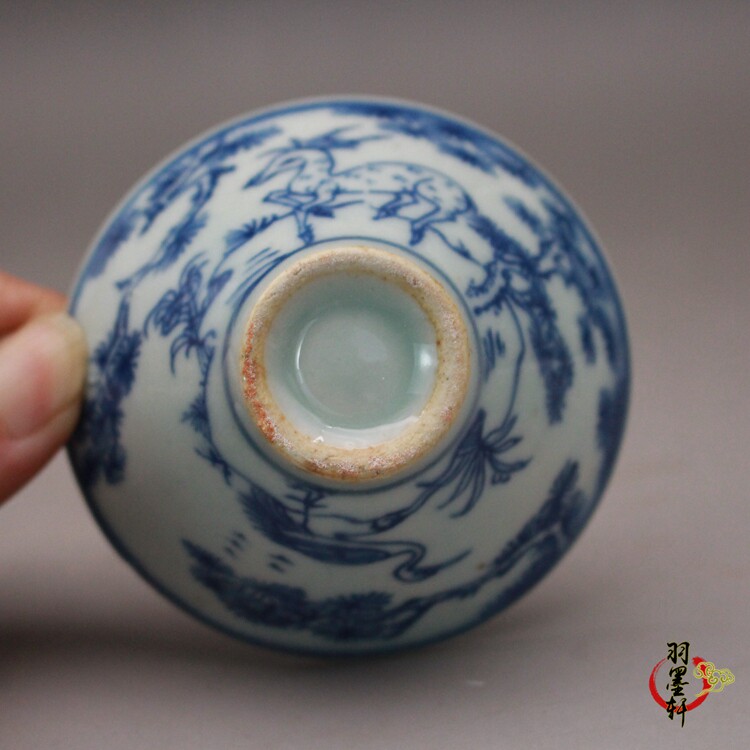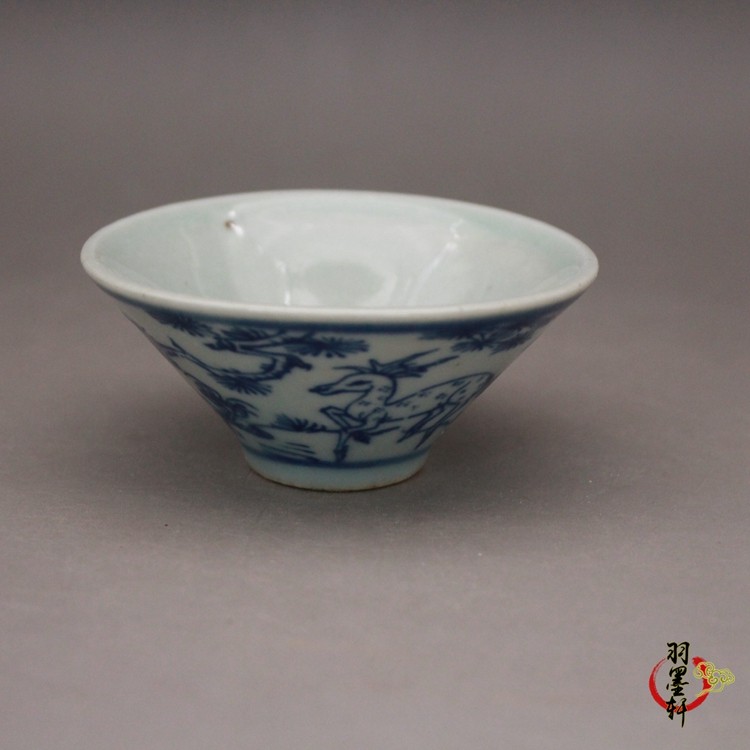 Special offer blue and white bamboo hat teacup late Qing folk kiln blue and white antique antique ceramics Jingdezhen antique tea set