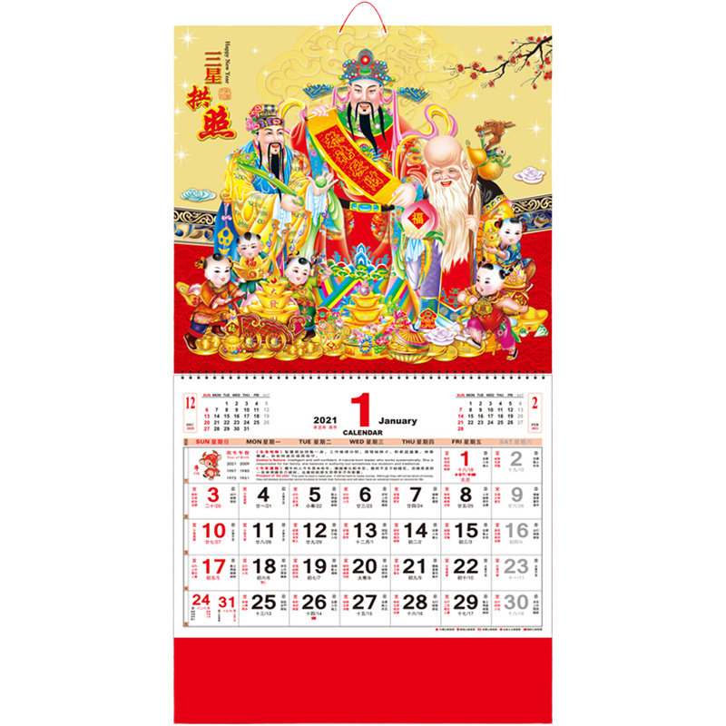 2022 Fu Characters Hang Calendar Tiger Year Zodiac Calendar Complex Character port Edition Fortune Lord Year Painting Lunar Calendar of the Lunar Calendar With the Week Period