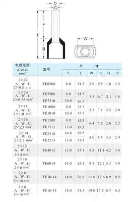 TE7508 double wire pin copper terminal 2 0 75 square pin type terminal block tube type copper joint