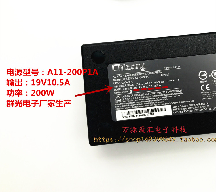 Chicony A11-200P1A Power Adapter Hasee God of War Charging Cable 19V 10 5A 200w