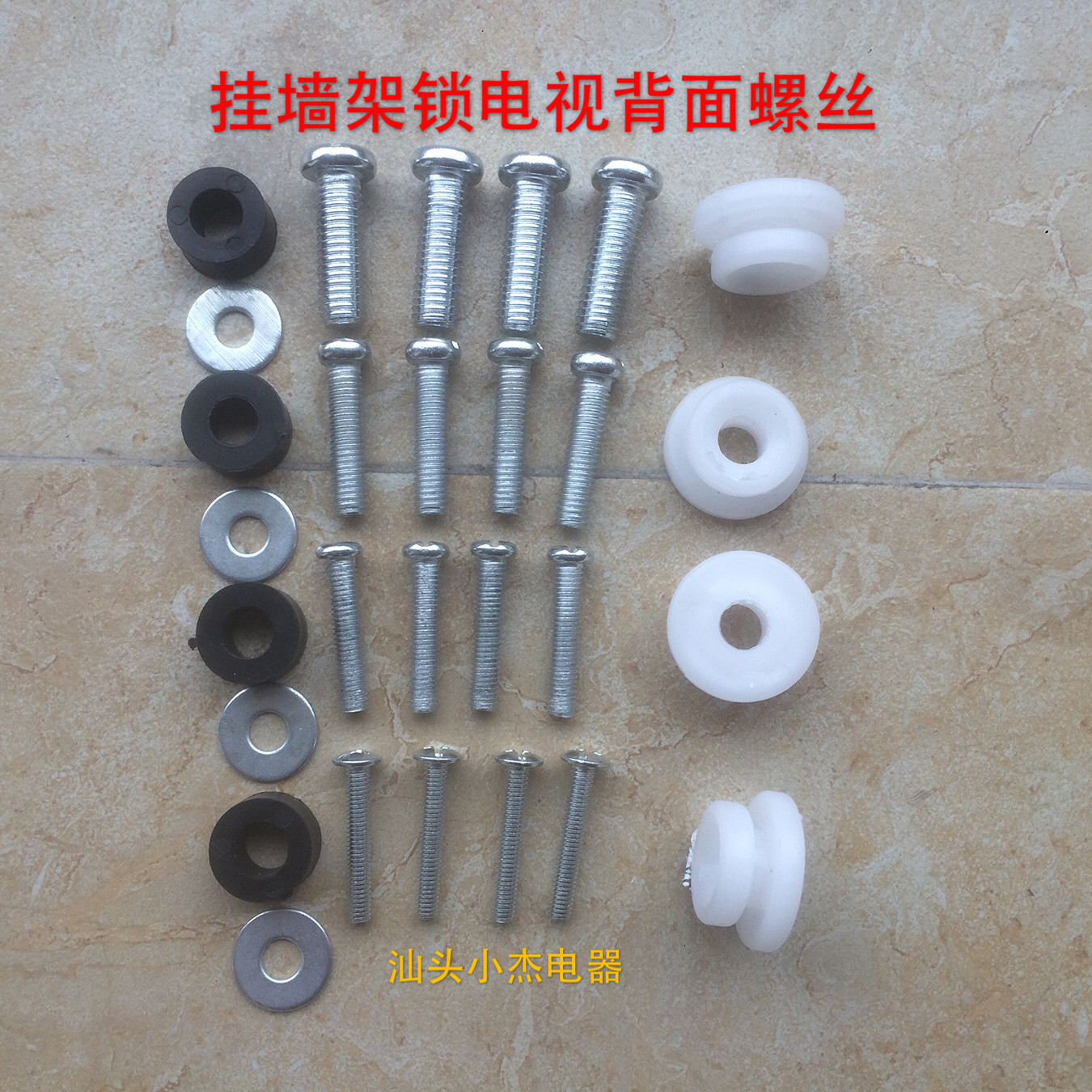 First provide the TV model and base photos to customer service Hisense Konka TV base special screws a set of wall mounts to lock the back of the TV four screws wall mounts to fix expansion tubes on the wall Screws to buy anti-fall rope