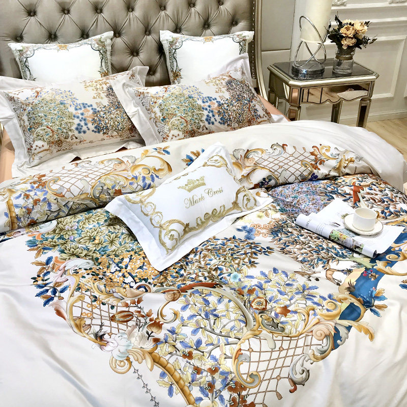 Italy light and luxurious 140 horse cotton full cotton four sets European-style digital printed pure cotton bunk bed bedding