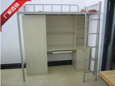 Student dormitory one-piece bed iron bed frame upper and lower desk combination with wardrobe computer desk apartment bed simple and modern