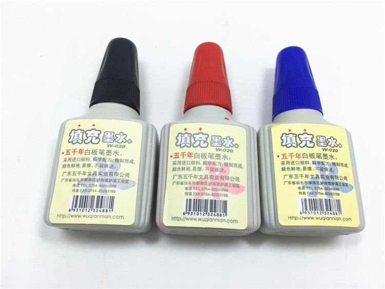 Five thousand years W-020 whiteboard pen ink refill liquid erasable pen water black blue red 28ml