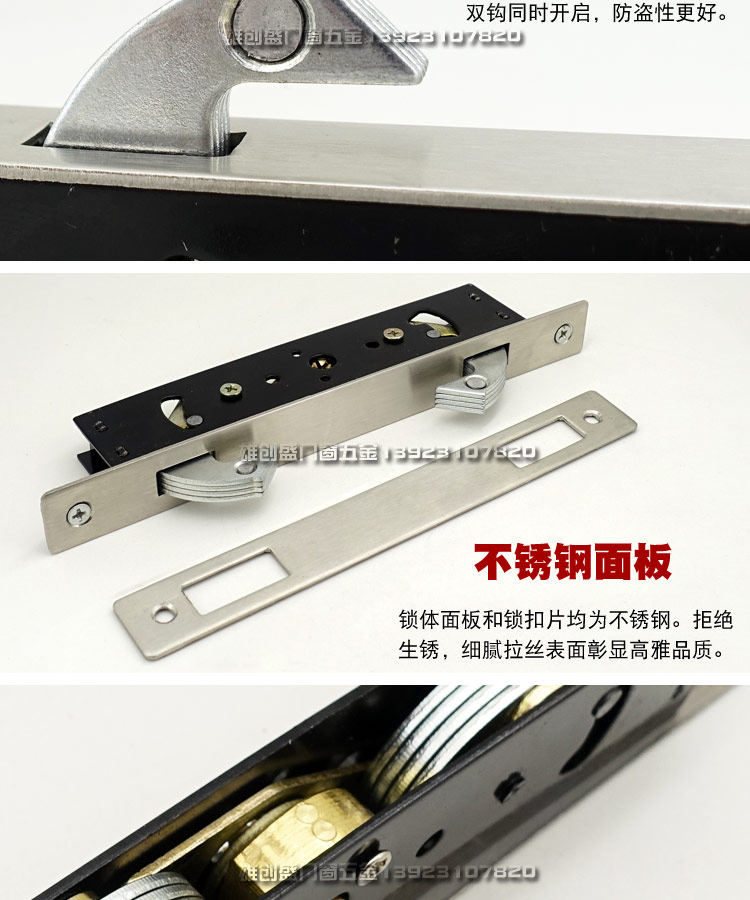 Double hook lock aluminum alloy mobile door lock pull gate with frame glass door wooden door suspension sliding sliding door double hook lock catch