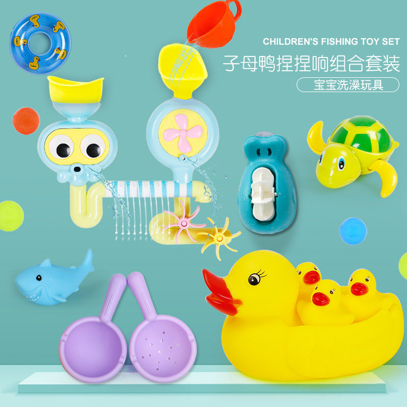 Mother and child duck port duck 7 pieces soft plastic colander water truck