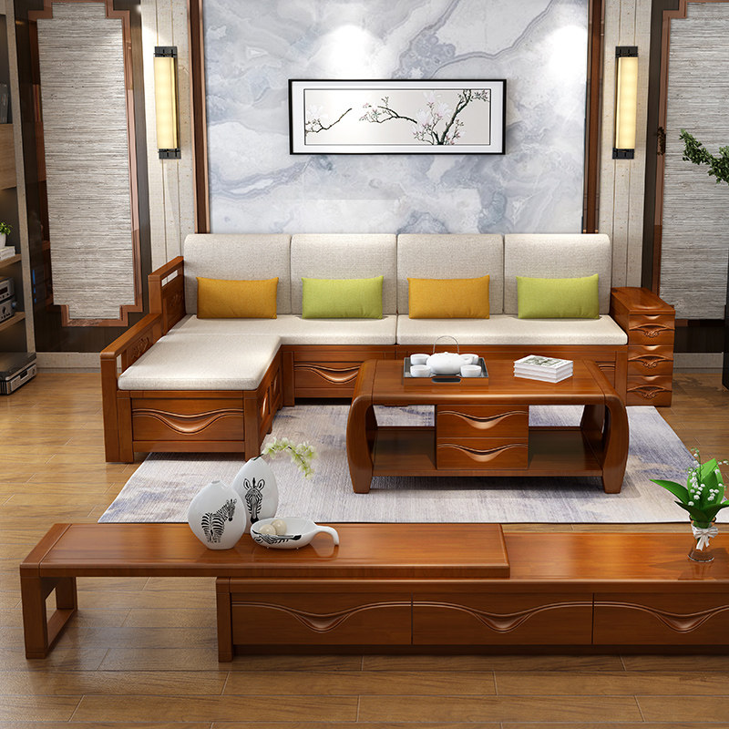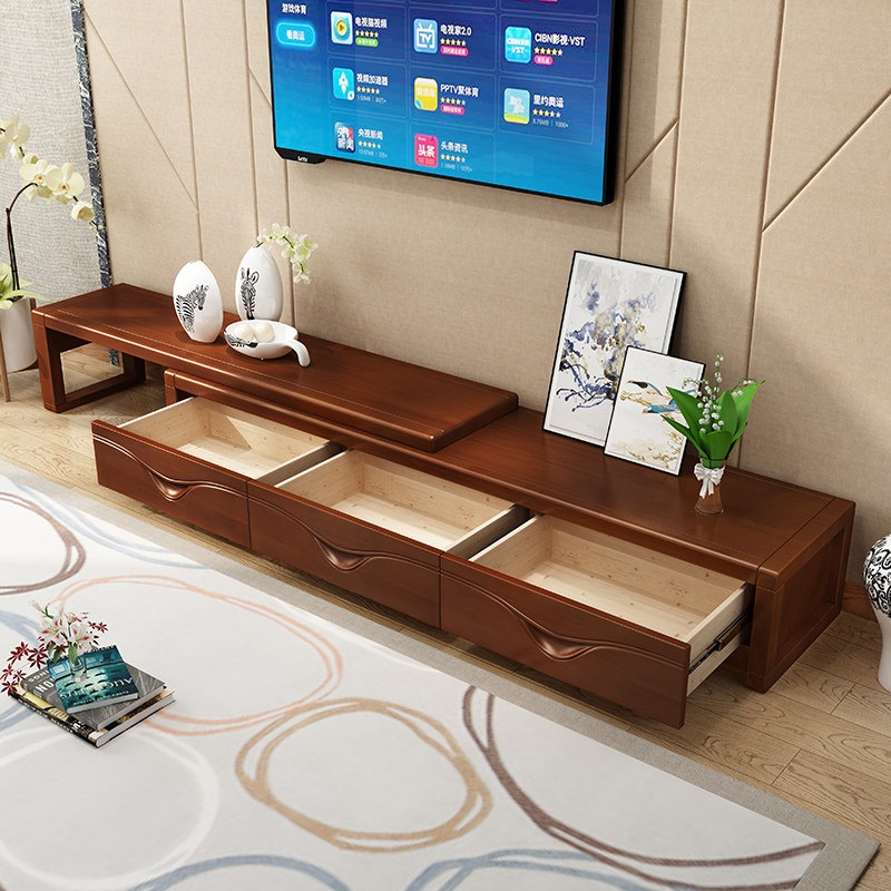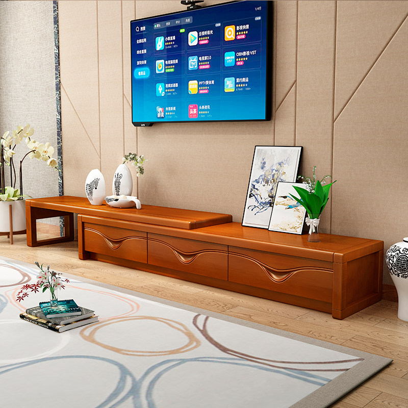 Modern Chinese solid wood TV cabinet smiling face retractable living room furniture video cabinet drawer economical TV cabinet