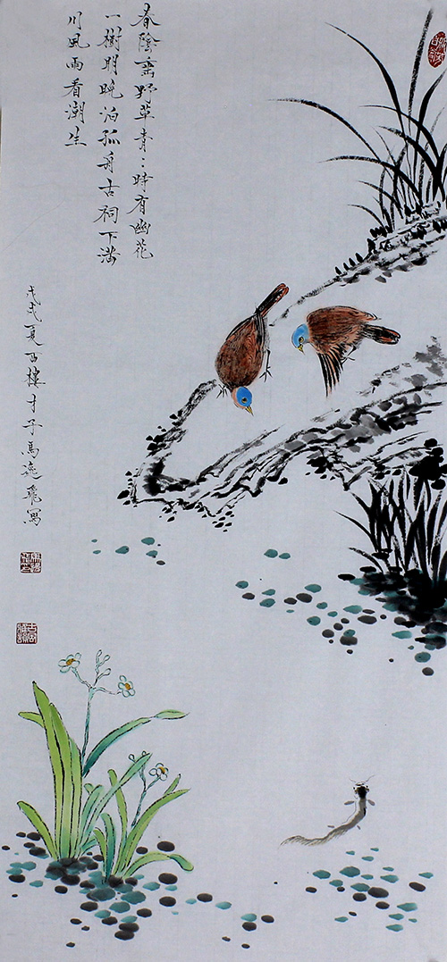 Flowers and birds decorated Chinese painting flowers and birds painted sofa background pure hand painted country painting framed bird painting