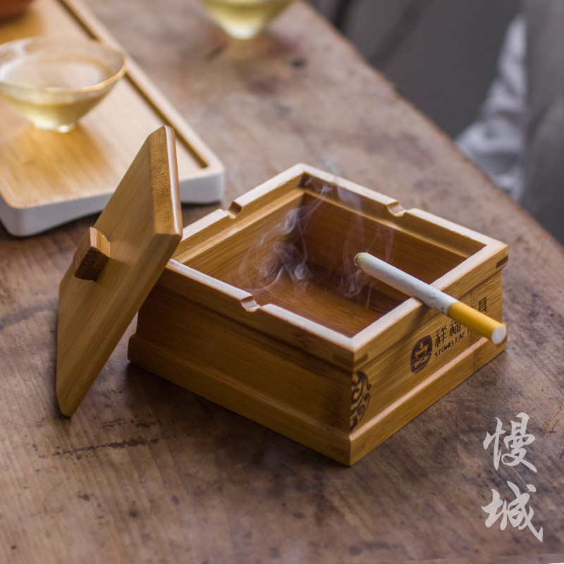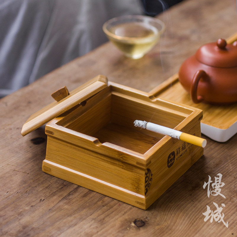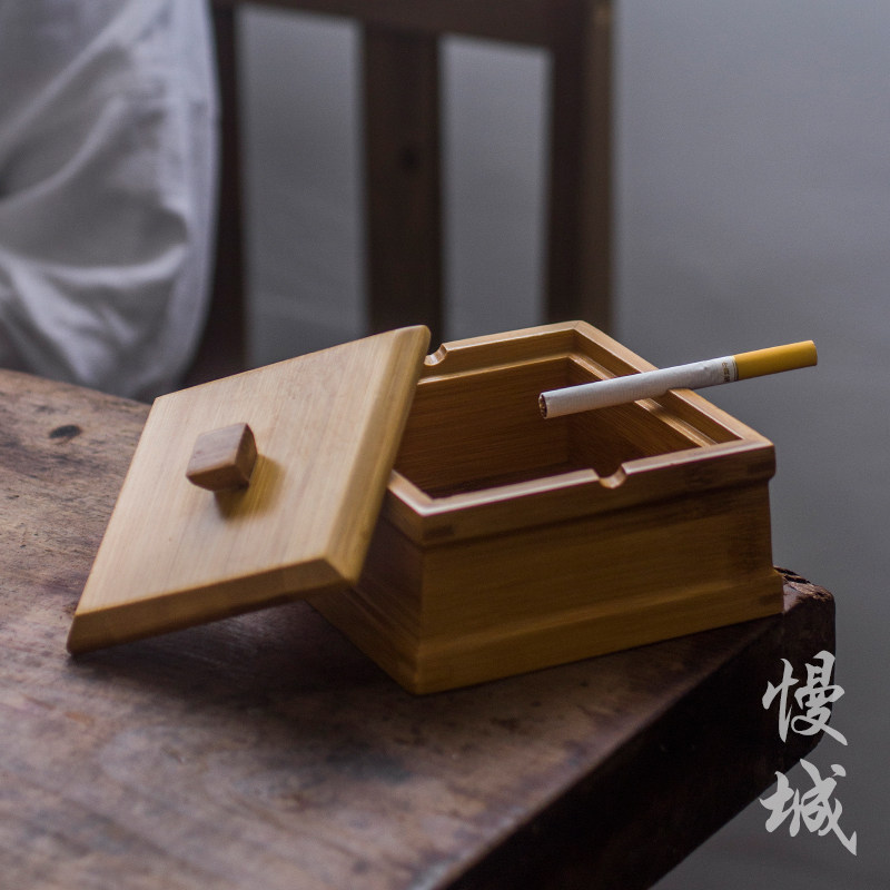 Cigarette ashtray Bamboo creative retro with lid Bamboo high-grade office fashion large tea set accessories creative ornaments