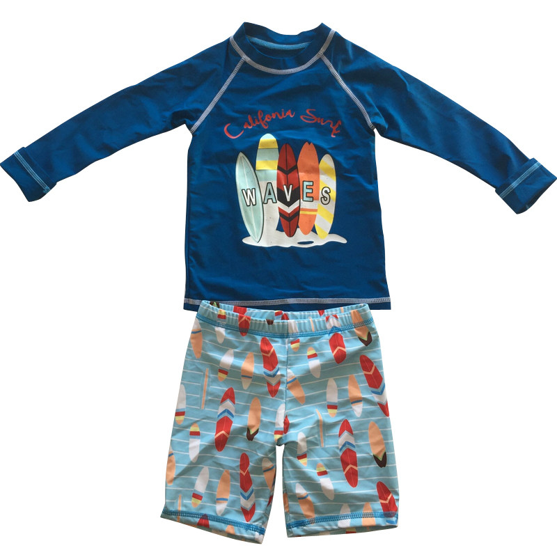 Export long-sleeved children's swimsuit boy's swimming trunks split sun protection warm thickened quick-drying big children's hot spring swimsuit