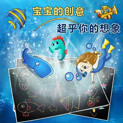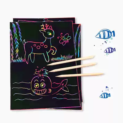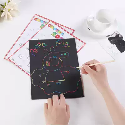 Scratch paper scraper book DIY handmade cartoon sketch book dazzling color scratch children surprise coating loose leaf magic book scrape sand painting color sand