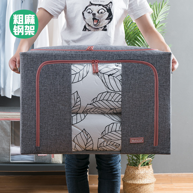Cotton and linen cloth art quilt Clothes storage box Steel frame clothing finishing box Toy storage box Moisture-proof king size