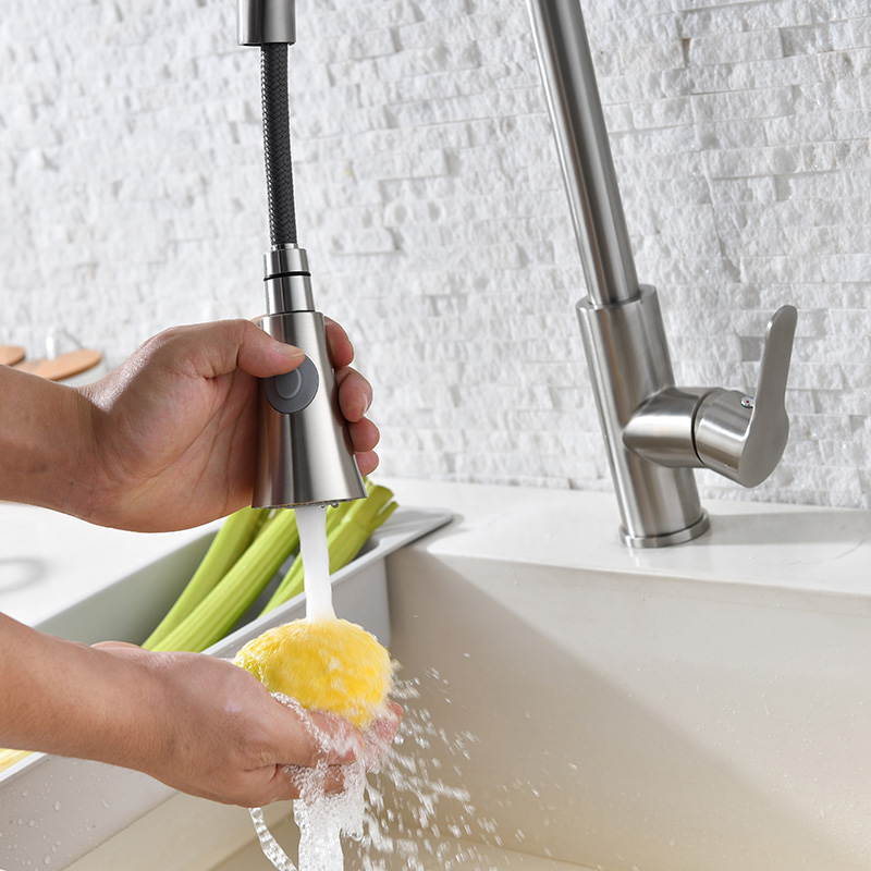 Kitchen faucet hot and cold 304 stainless steel household washing basin dish washing sink Universal pull-out telescopic faucet