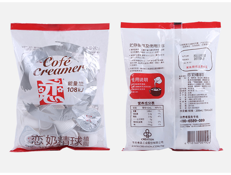 Paedophie Cream Ball Table Bay Coffee Mate Big Love Milk Fine Ball 10mlx3 Bag 60 Grain Coffee Balls Milk Sugar Milk Bag