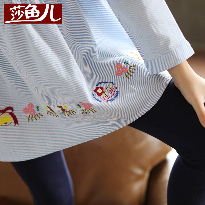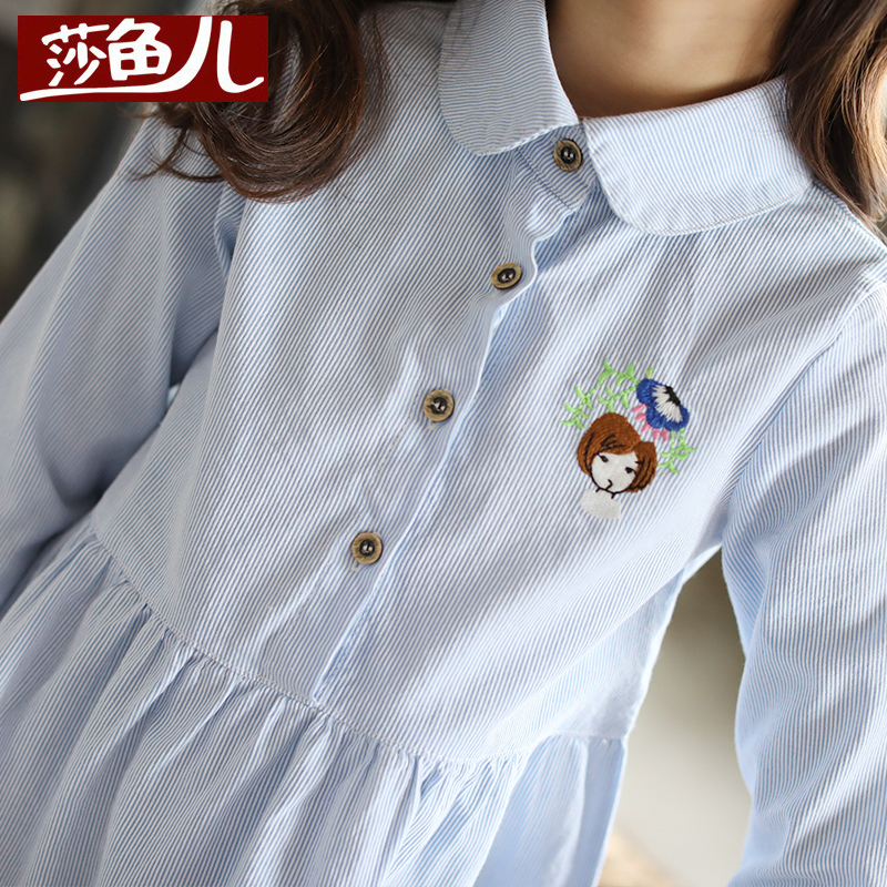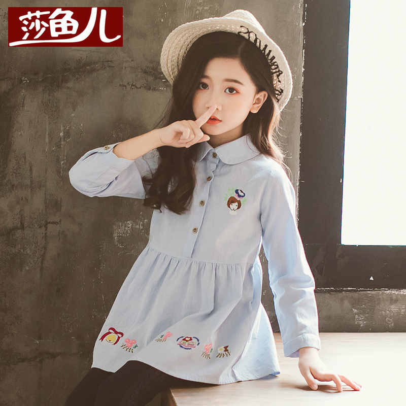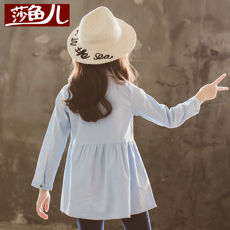 Girls dress autumn Korean version of the girl college style pure cotton striped long-sleeved shirt Foreign school shirt Children's skirt