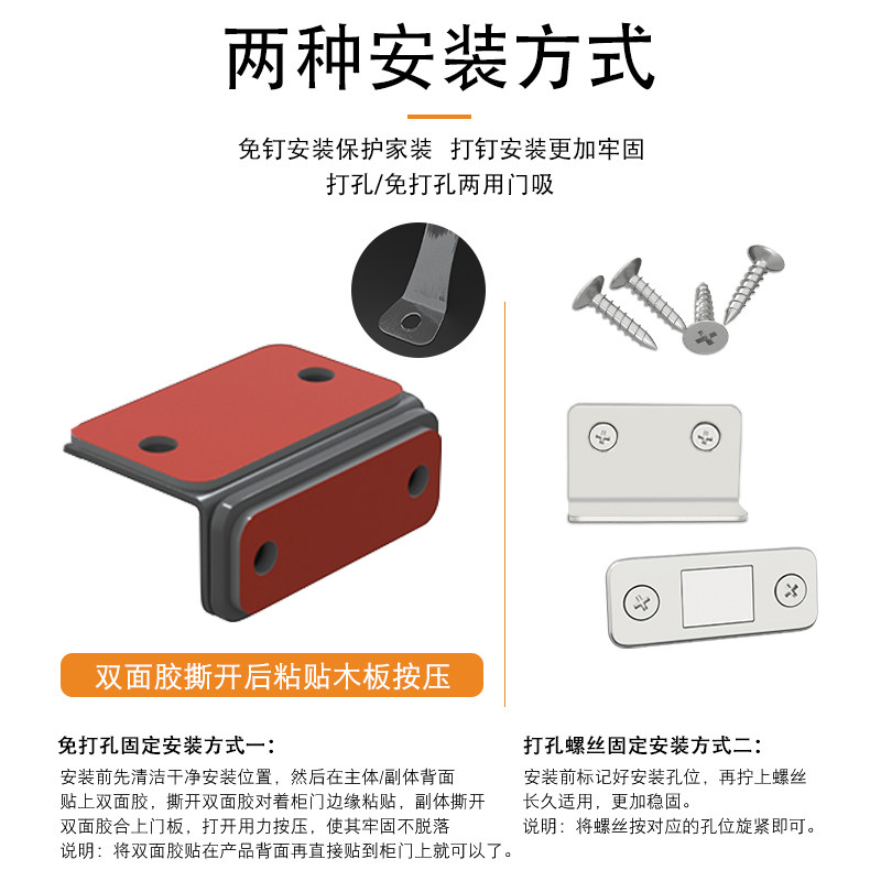Punch-free magnetic sliding wardrobe door magnetic touch magnetic stripe chip absorber invisible sliding door magnet strong magnetic door suction