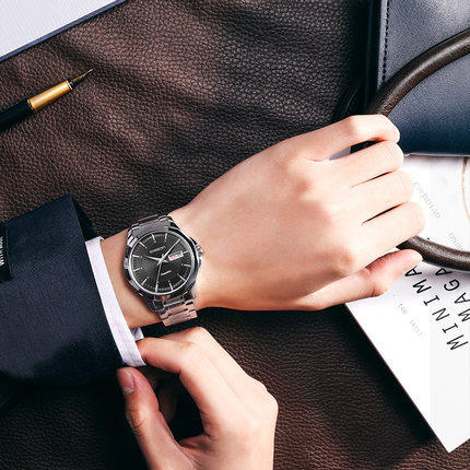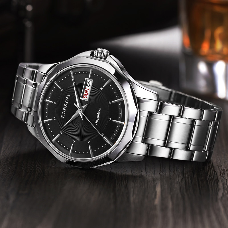 Rossini counter watch men's stainless steel waterproof business casual men's watch tungsten steel calendar quartz men's watch 5777