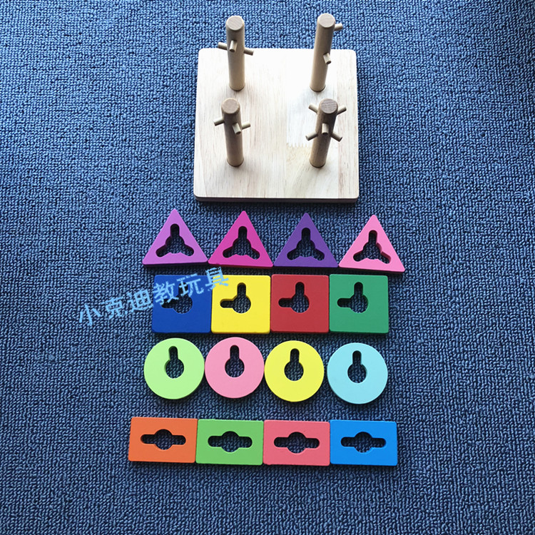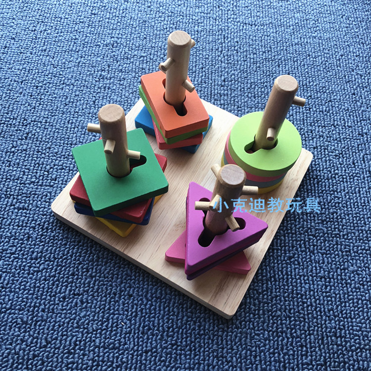 Montessori four sets of columns Geometric shape colorful sets of columns 1-2-3-4 years old baby early education cognitive wooden children's toys