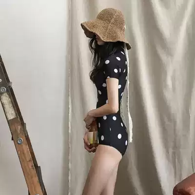 South Korea's new retro fresh wave spot short sleeve Conservative belly thin triangle one-piece hot spring swimsuit female holiday