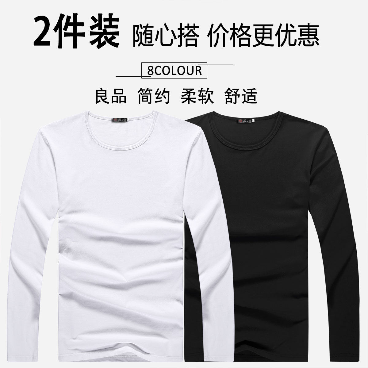 Free matching option long sleeve round collar white white long sleeve round collar black black long sleeve round collar white light grey long sleeve round collar white black long sleeve round collar white bao blue long