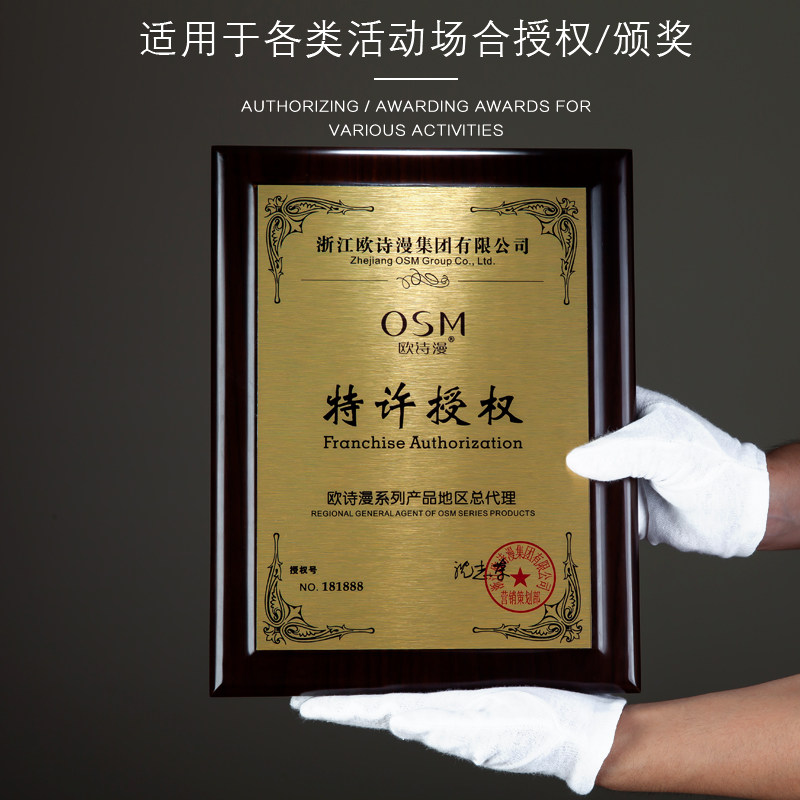 Agent to join the dealer brand authorization card certificate medal Custom custom imitation wood honor plaque production
