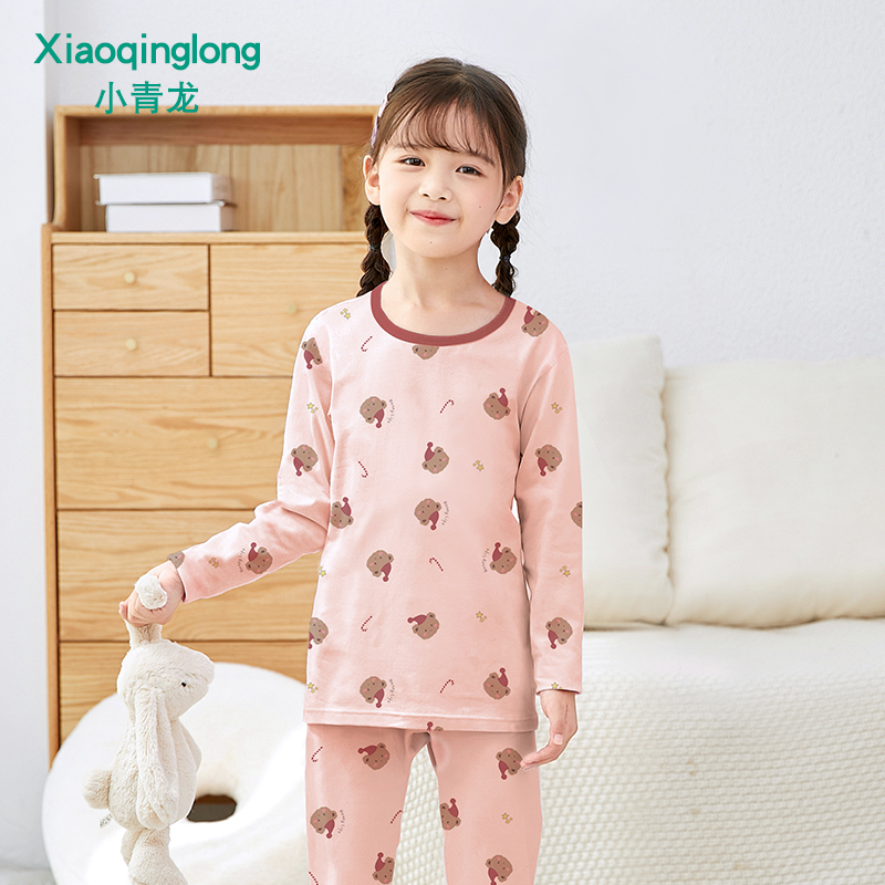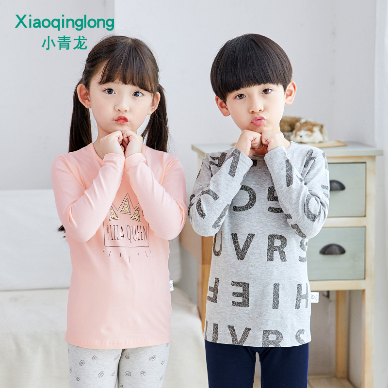 Xiaoqinglong baby children's underwear set pure cotton boys and girls autumn clothes and long pants baby cotton spring and autumn clothing for middle and older children