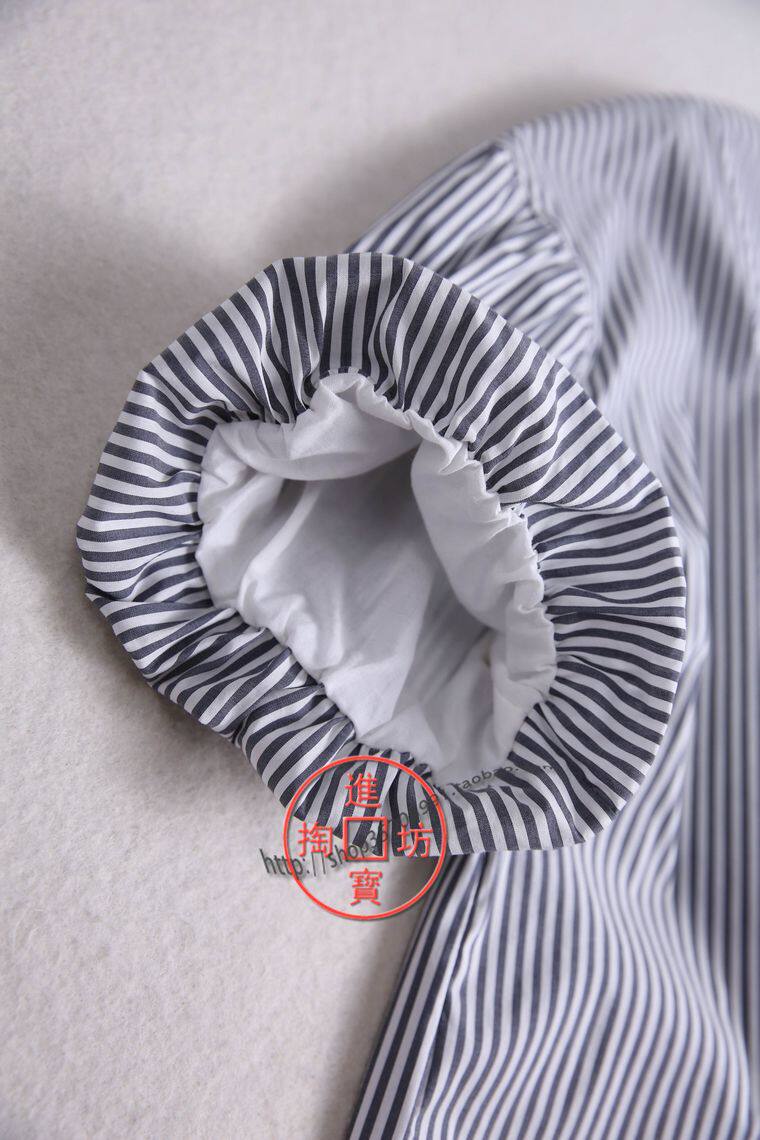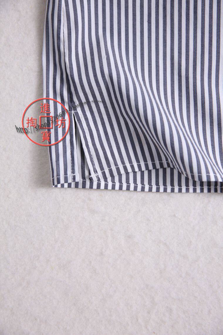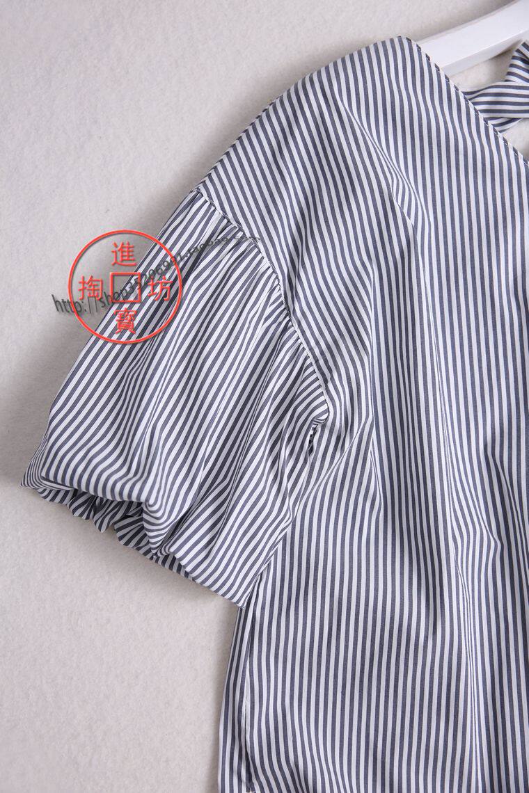 154D 0717 Reduced Age Casual Bow Tie Lace V Collar Bubble Short Sleeve Crash Color Vertical Striped Sleeve Head Shirt