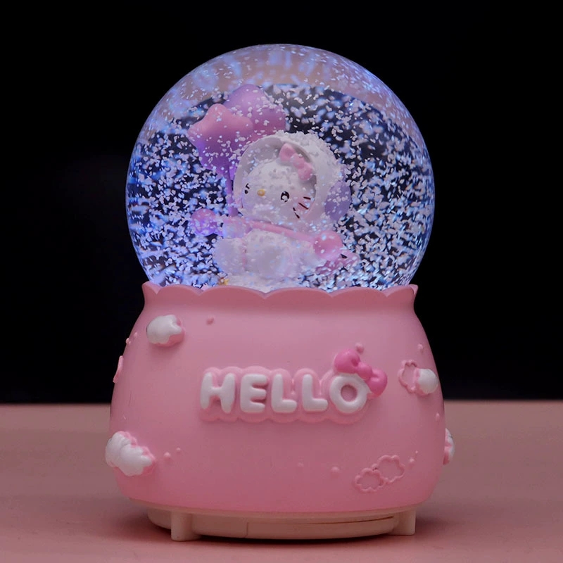 Creative Pink Space KT Cat Floating Snow Flows Glass Crystal Ball Music Box Children's Day Gift
