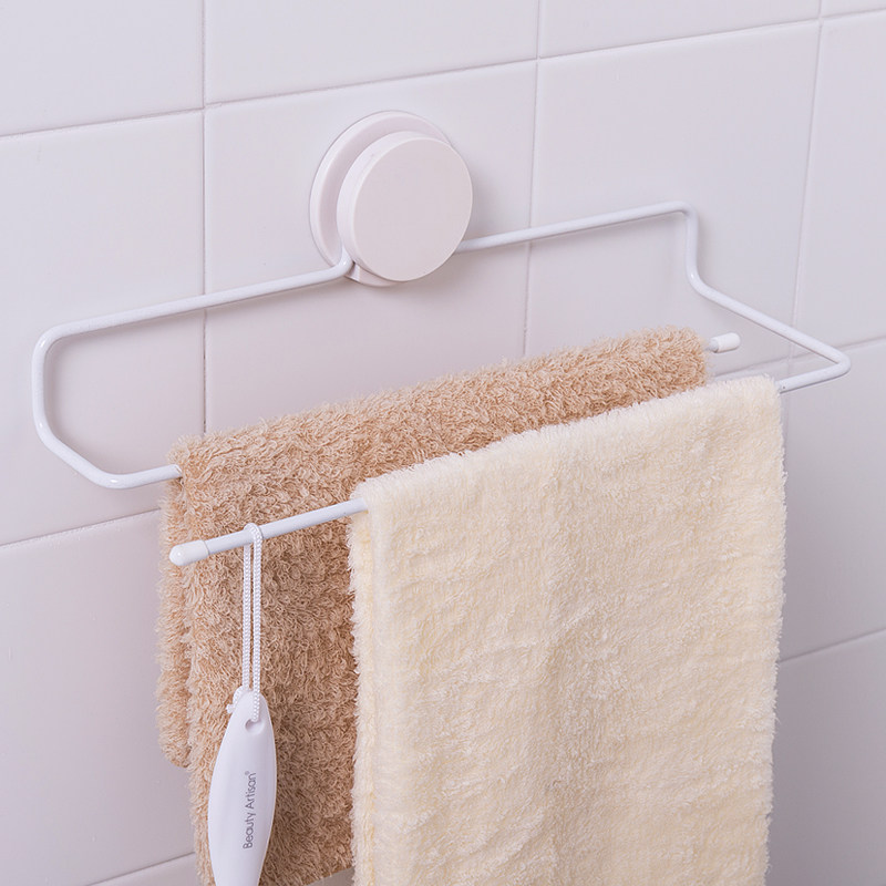 Minimalist Kitchen Rag Rack Free Suction Cup Type Double Layer Airing Towel Rack Makeup Room Black White Wall Hanging Rack