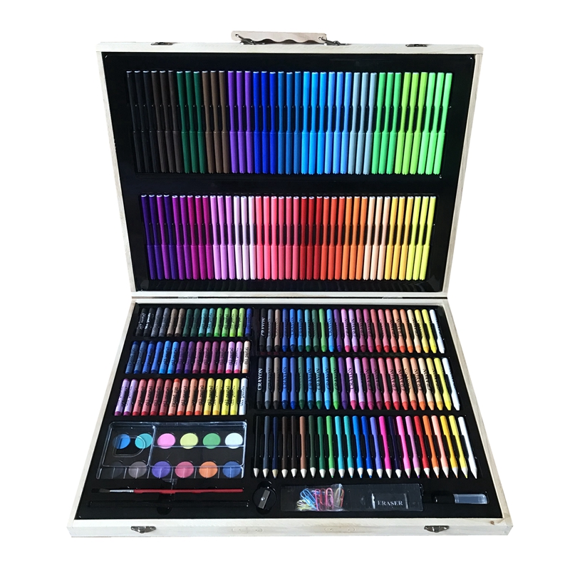 Children Watercolor Pen Suit Washable Nursery School Elementary School Kids Wood Box Drawing Tool Suit Gift Box Custom Logo