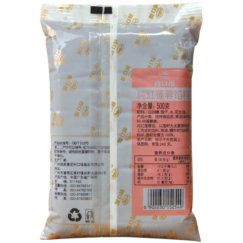 Guangzhou Restaurant Likoufu filling pure red lotus paste filling 500g traditional pastry moon cake filling baking raw materials wholesale