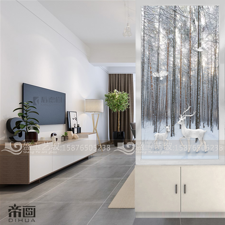 Custom Art Glass Minimalist Modern Living Room Screen Partition Aisle Genguan TV Background Wall Frosted Sculpture